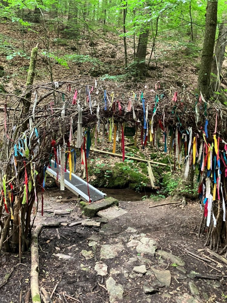 Anschließend folgt der Wegverlauf wieder dem Limeswanderweg, einem steilen Fußpfad, in schnurgerader Line Richtung Süd-Süd-Ost. Auf diesem Wegabschnitt finden sich das „Tor der Wünsche“, einige längere sichtbare Abschnitte des ehemaligen Limes mit Wall und Graben, mehrere tief eingeschnittene Klingen und am Ende der Nachbau des Römischen Wachturms am Römergraben 13 (Wachposten9/64). Am Wachturm bietet sich die Möglichkeit für eine längere Pause (zahlreiche Sitzgelegenheiten), sowie die Besteigung des Turms.