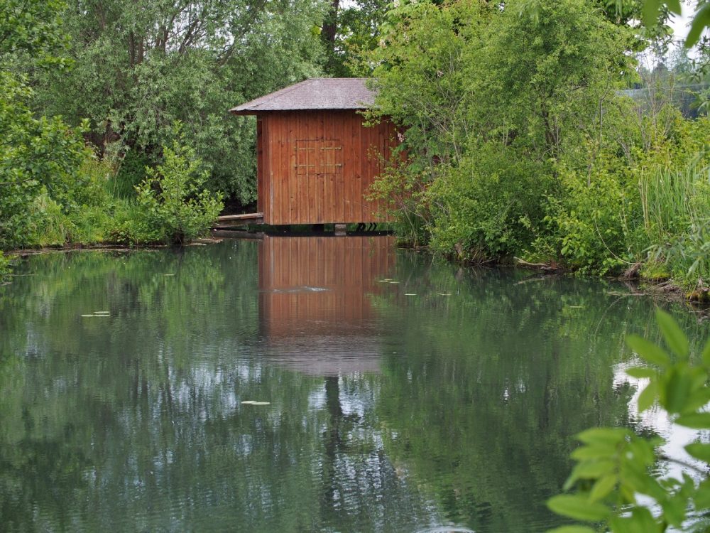 haben eine Temperatur von 17° Grad. Quelle und Badehaus befinden sich auf der Rückseite des Sees.