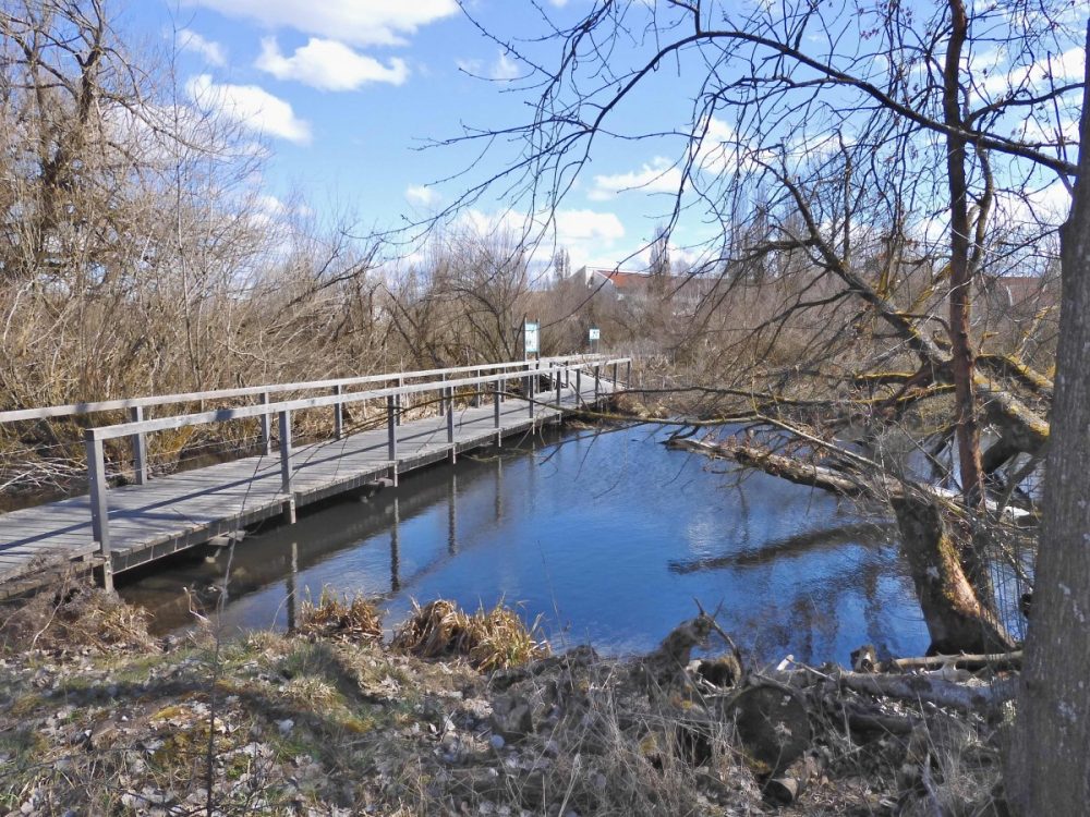 Wir beginnen unsere Wanderung am Parkplatz des Naturthemenparks und wenden uns von der Straße aus gesehen dem linken Weg zu. Hier befinden wir uns zunächst im Naturthemenpark Bad Saulgau mit sehr vielen Informationstafeln und bei schönem Wetter auch einigen Besuchern. Am nächsten Abzweig gehen wir wieder nach links und erreichen am Waldrand den Getreideschaugarten. Dann geht es nach rechts und wieder links, wo wir eine Runde auf den Stegen spazieren. Hier gibt es viel zu entdecken: eine große Biberburg, Vögel, Fische, Schildkröten… Unmittelbar bevor wir die Runde schließen, wandern wir nach links am Stockäckergraben entlang und anschließend ein Stück Straße auf die Fachklinik zu. Direkt vor dem Gebäude gehen wir rechts auf einem Weglein zum Rastplatz hinauf. Wer möchte, kann noch kurz links einen Abstecher in die moderne Kapelle am Siebenkreuzerweg machen.